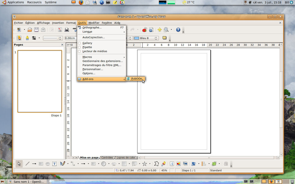Si vous le désirez, vous pouvez ensuite convertir ces .odp en .odg. En effet, le module OOo Draw (dessin) est l'équivalent de Microsoft Publisher. Pour cela, ouvrez simplement vos fichiers .odp avec Impress (présentation) et faites "enregistrer sous", "dessin ODF (.odg)".