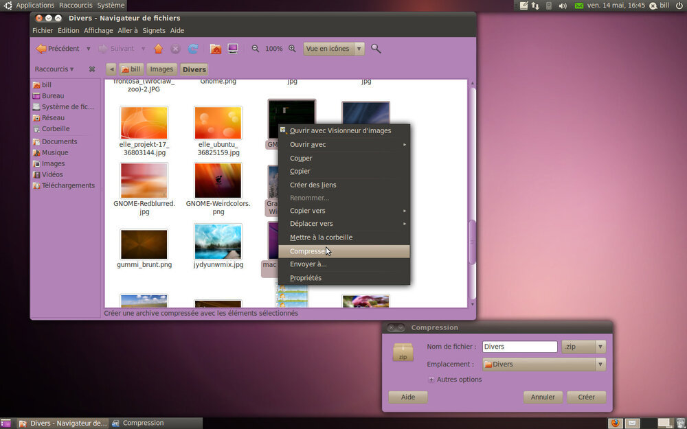 - L'archive se crée alors au même endroit, avec le nom du répertoire (si vous avez compressé un répertoire) ou du dernier fichier sélectionné (si vous avez compressé un groupe de fichiers).