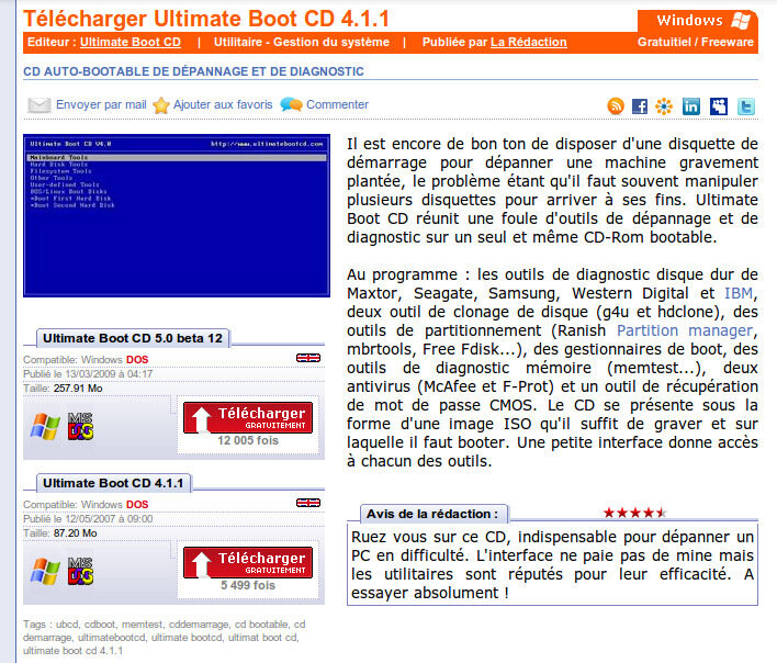 http://www.ultimatebootcd.com9 733 clics - Créé le 05/03/2010 15:26 par Bill - Modifié le 08/03/2010 09:32
