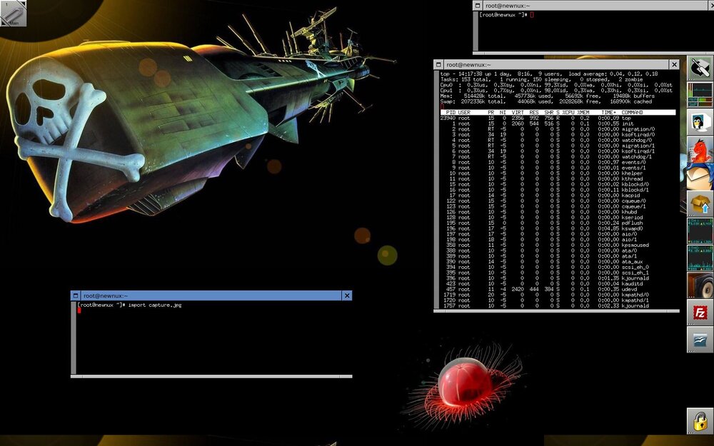 - Façon windows (si votre window manager dispose d'un fonction presse papier, Kde le fait je crois) avec ALT+Impr puis coller dans Gimp, Konqueror, Kview ou toute autre outils supportant les imports du presse-papier
