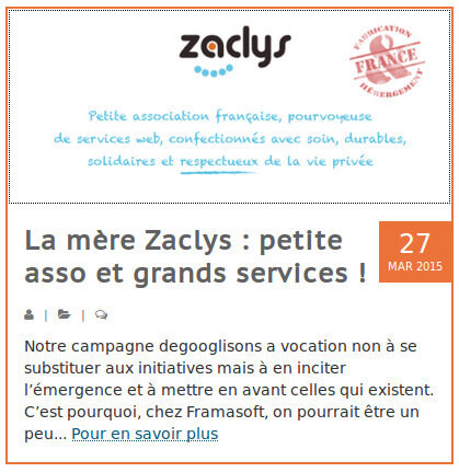 A présent nous comptons sur chacun de vous pour faire circuler cet article sur vos réseaux sociaux (à l'aide des boutons sous ce billet). Les services Zaclys sont encore trop peu connus des Français et nous avons besoin de plus de monde pour accélérer le développement du site et améliorer chaque service.