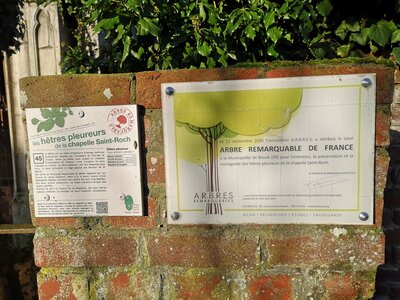 Les arbres remarquables du parc naturel régionale Scarpe-Escaut, Les hêtres pleureurs de la chapelle St Roch - La plaque09/01/2022 10h46Les hêtres pleureurs de la chapelle St Roch - La plaque