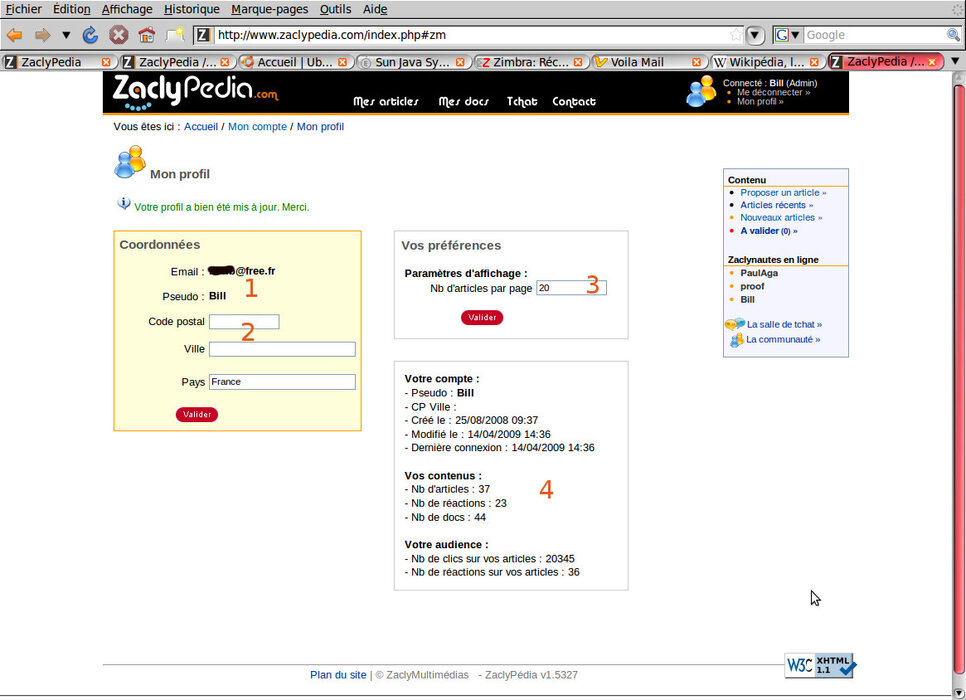 La zone « Mon profil » vous permet de contrôler les informations de votre compte, comme votre identité et plusieurs autres paramètres.