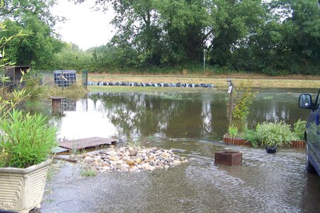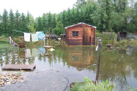 pluie de septembre, rapide digue montée pour empècher l'eau d'arriver jusqu'à la maisonrapide digue montée pour empècher l'eau d'arriver jusqu'à la maison