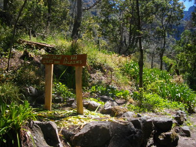 TOUR DU PITON DES NEIGES, 2ème ETAPE : LA ROCHE MERVEILLEUSE (Cilaos) - MARLA (Mafate) : 5 h 30 de marche, 1055 m  , 860 m - ; P3, T1 (très court passage T2). Météo : beau temps. Participant : Marcel., L'école de Marla ; j'y reprendrais bien du service !13/10/2014 15h35L'école de Marla ; j'y reprendrais bien du service !