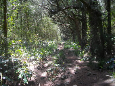 TOUR DU PITON DES NEIGES, 3ème ETAPE : MARLA (Mafate) - HELL-BOURG (Salazie) : 19.5 km, 7 h 15, 1100 m  , 1485 m - ; P3, T1. Météo : nuageux puis brouillard suintant, et à nouveau nuageux. Participant : Marcel, Sur le Chemin du Gymnase, ultime effort avant l'arrivée !14/10/2014 15h15Sur le "Chemin du Gymnase", ultime effort avant l'arrivée !
