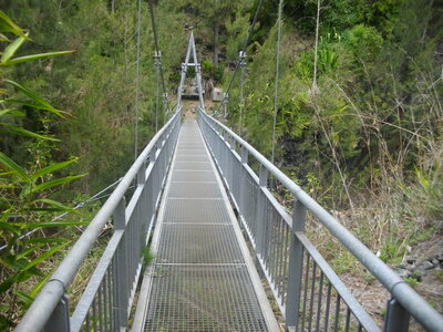 TOUR DU PITON DES NEIGES, 3ème ETAPE : MARLA (Mafate) - HELL-BOURG (Salazie) : 19.5 km, 7 h 15, 1100 m  , 1485 m - ; P3, T1. Météo : nuageux puis brouillard suintant, et à nouveau nuageux. Participant : Marcel, La passerelle avant la dernière mais rude remontée de 300 m de dénivelé vers Hell-Bourg.14/10/2014 13h34La passerelle avant la dernière mais rude remontée de 300 m de dénivelé vers Hell-Bourg.
