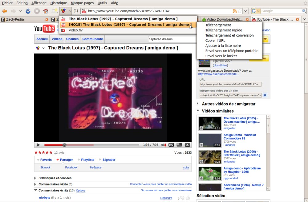 - Allez sur http://www.youtube.fr et choisissez une vidéo. A ce moment, l'icône de DownloadHelper devient colorée et s'anime.