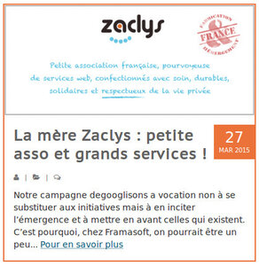 A présent nous comptons sur chacun de vous pour faire circuler cet article sur vos réseaux sociaux (à l'aide des boutons sous ce billet). Les services Zaclys sont encore trop peu connus des Français et nous avons besoin de plus de monde pour accélérer le développement du site et améliorer chaque service.